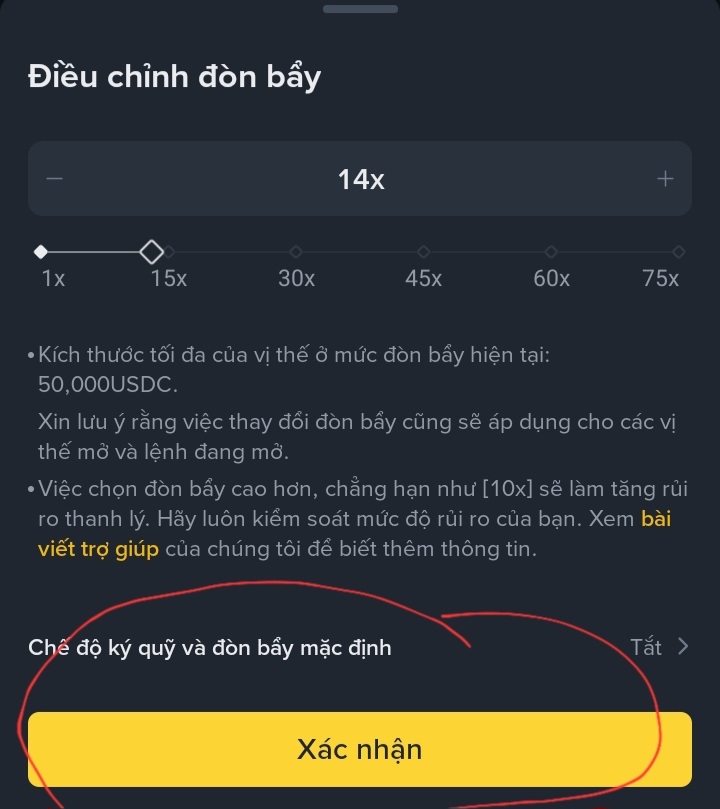 3. Màn hình Adjust Leverage (Điều chỉnh đòn bẩy) hiện ra.