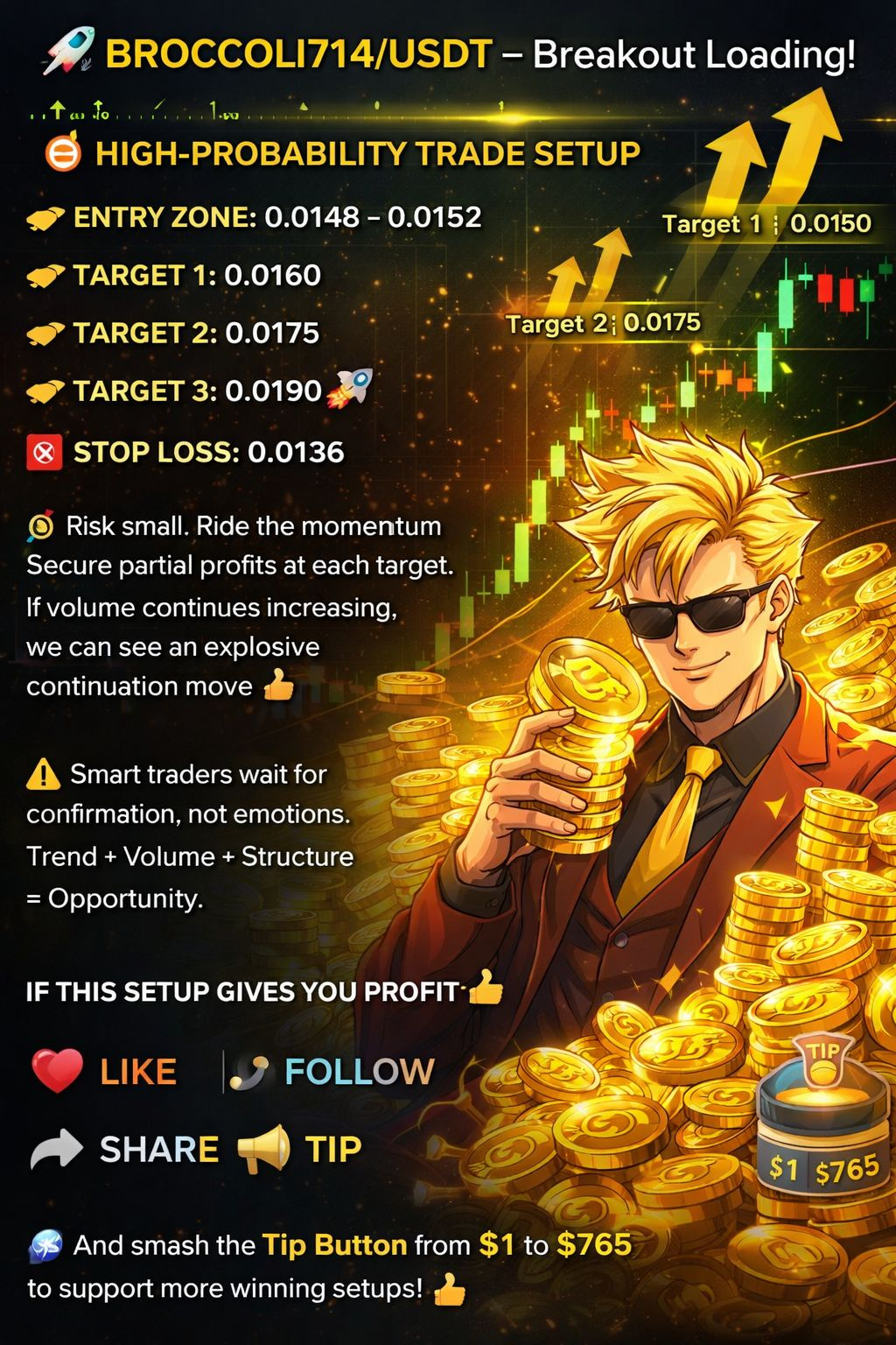 💎 And smash the Tip Button from $1 to $765 to support more winning setups!