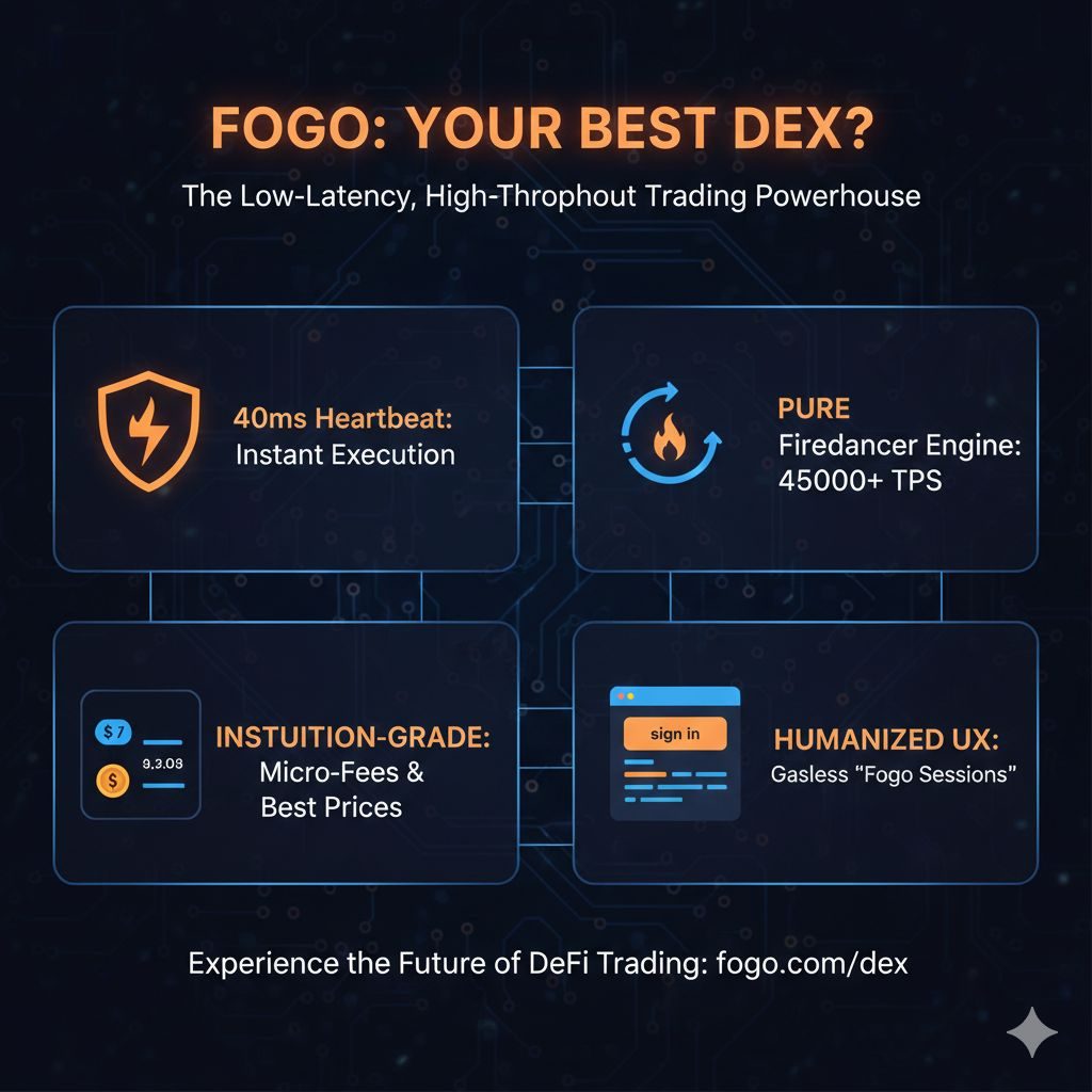 FeatureFOGO DEXTypical DEXFees~$0.00001 (fixed)Variable gasLatency~40ms400ms–12sSlippageLow (deep liquidity)Often highUXSingle session signSign every trade
