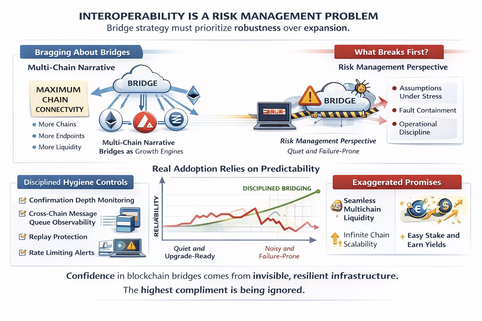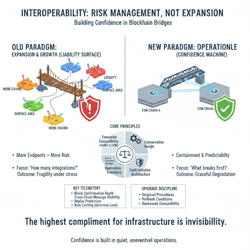 The dominant narrative in crypto says interoperability is about expansion, more chains, more liquidity venues, more surface area. Bridges are marketed as growth engines. But if you’ve operated production infrastructure, you know that every bridge is also a liability surface.