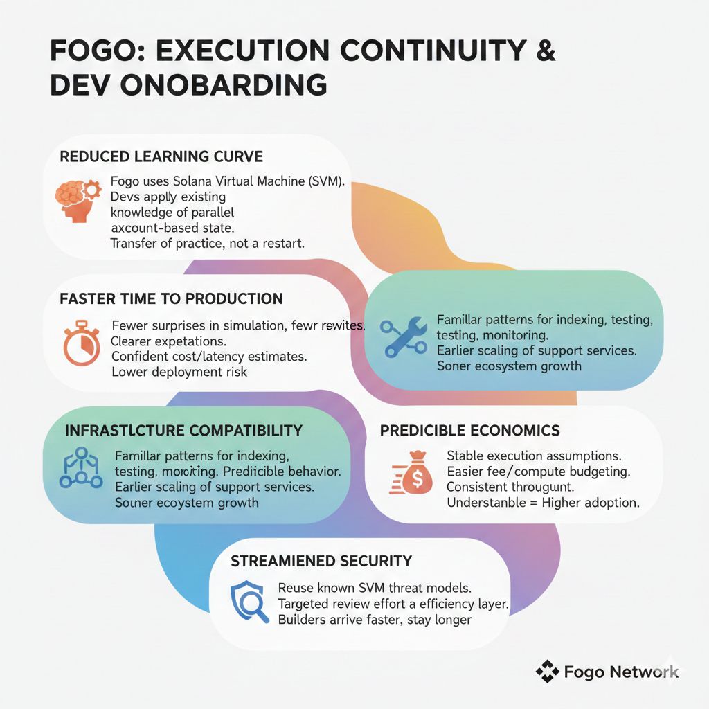 A new Layer 1 usually asks developers to relearn how programs run, how state is stored, and how transactions interact. That learning cost slows real adoption. @Fogo Official reduces this barrier by using the Solana Virtual Machine. In My research, this choice matters less for branding and more for workflow continuity. Developers who already understand parallel execution and account-based state can apply that knowledge directly. It becomes a transfer of practice rather than a restart.