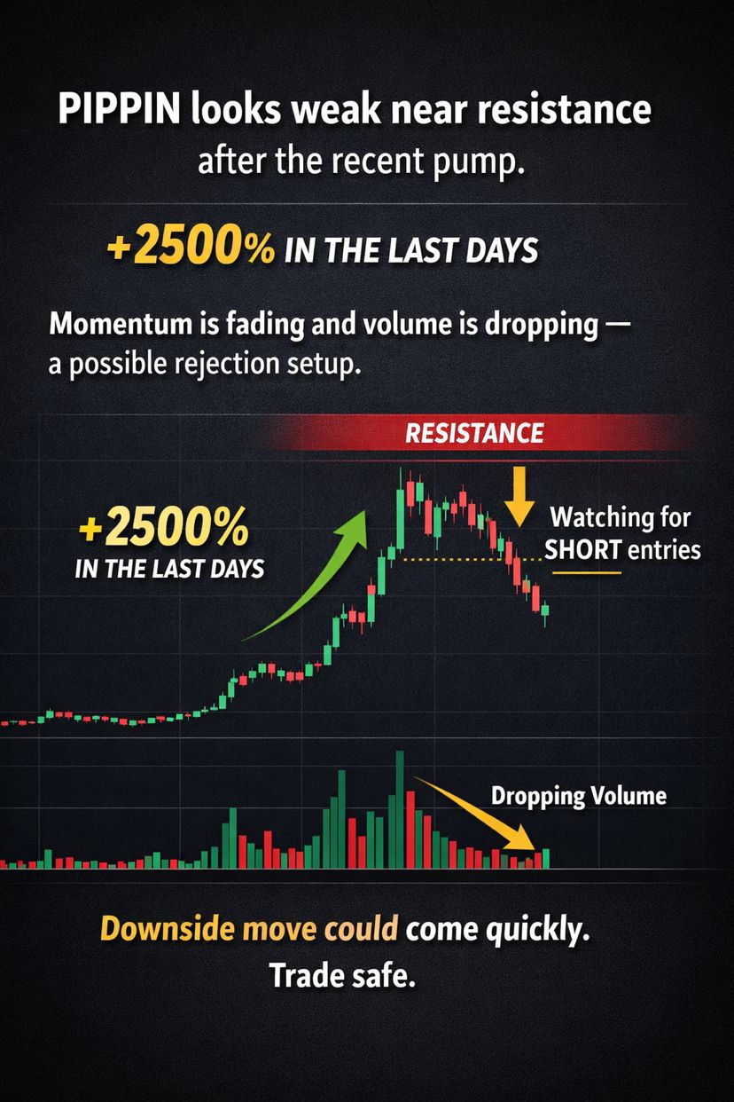 PIPPIN a pompat puternic, dar impulsul încetinește în apropierea rezistenței. Volumul este în scădere — urmărind o posibilă corecție pe termen scurt.