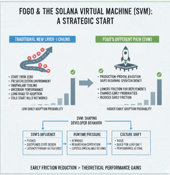 The real value of Fogo choosing the Solana Virtual Machine is not the headline metric people repeat. It’s the starting position it creates.