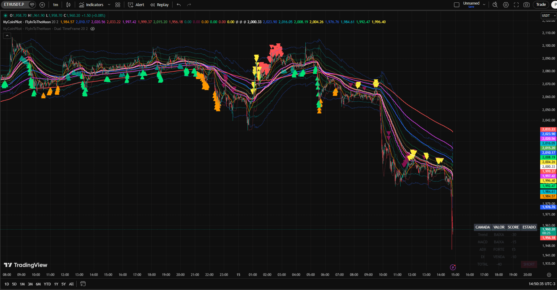 Indicadores rápidos capturam microestruturas e antecipam possíveis viradas. Indicadores lentos filtram ruído e confirmam a tendência predominante. Quando combinados corretamente, eles criam um sistema capaz de antecipar zonas de transição, ao mesmo tempo em que protege o capital.