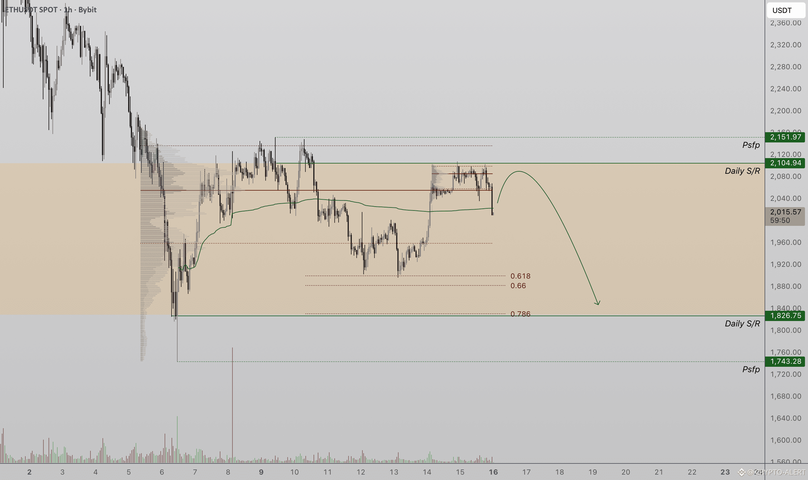 Ethereum is stuck in a distribution phase. Rejection at resistance keeps the risk skewed toward the downside. Protect your capital and watch the $1,800 level closely. 🛡️