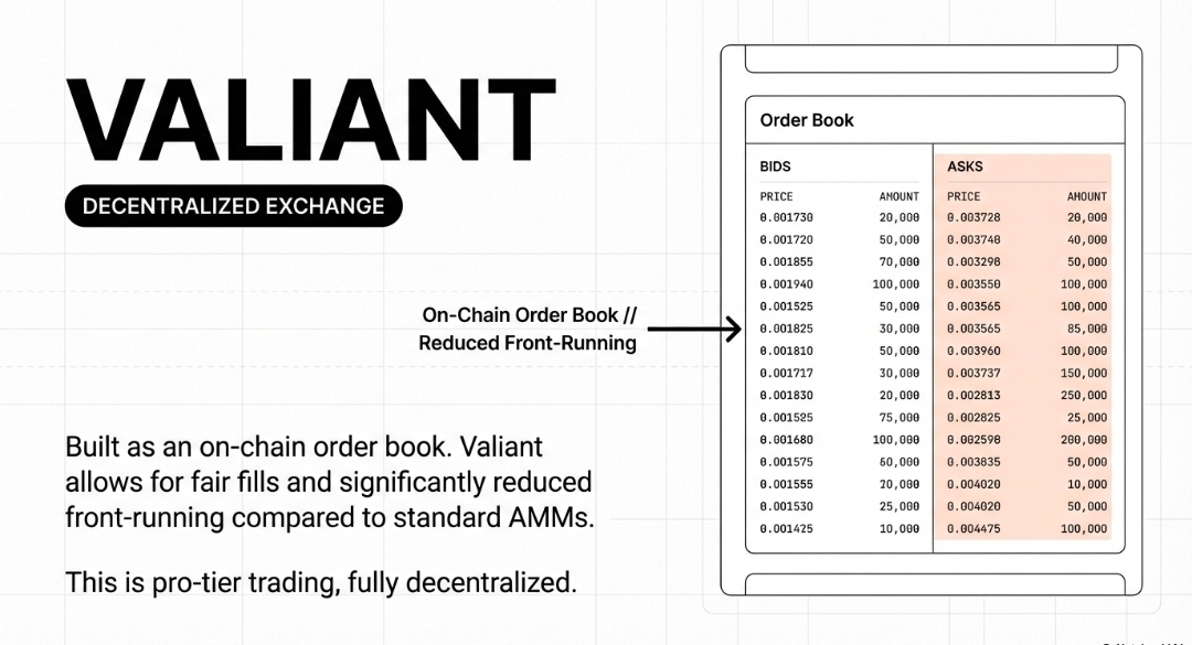 Valiant: A DEX built as an on-chain order book, allowing for fair fills and reduced front-running.