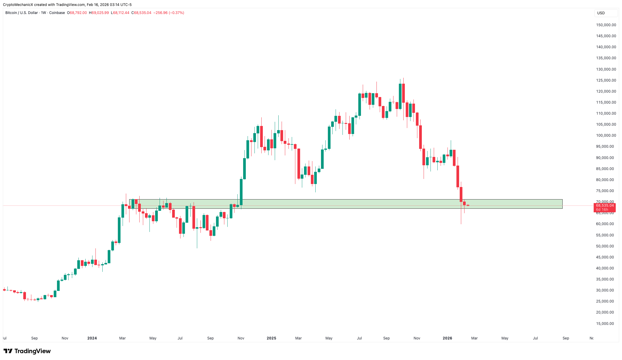Bitcoin se tranzacționează în prezent în jurul maximelor sale din 2024. Această zonă a acționat ca rezistență timp de câteva luni. Poate ai auzit conceptul în analiza tehnică: rezistența poate deveni suport, iar suportul poate deveni rezistență.