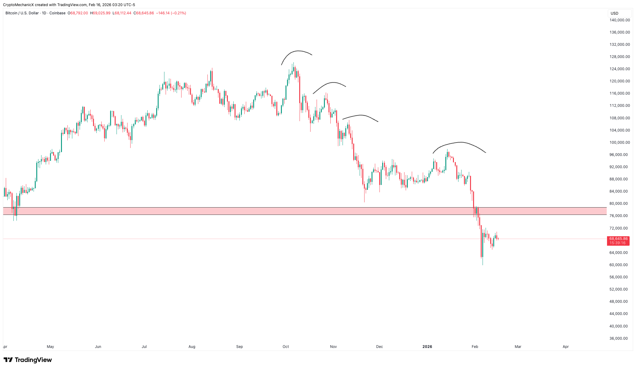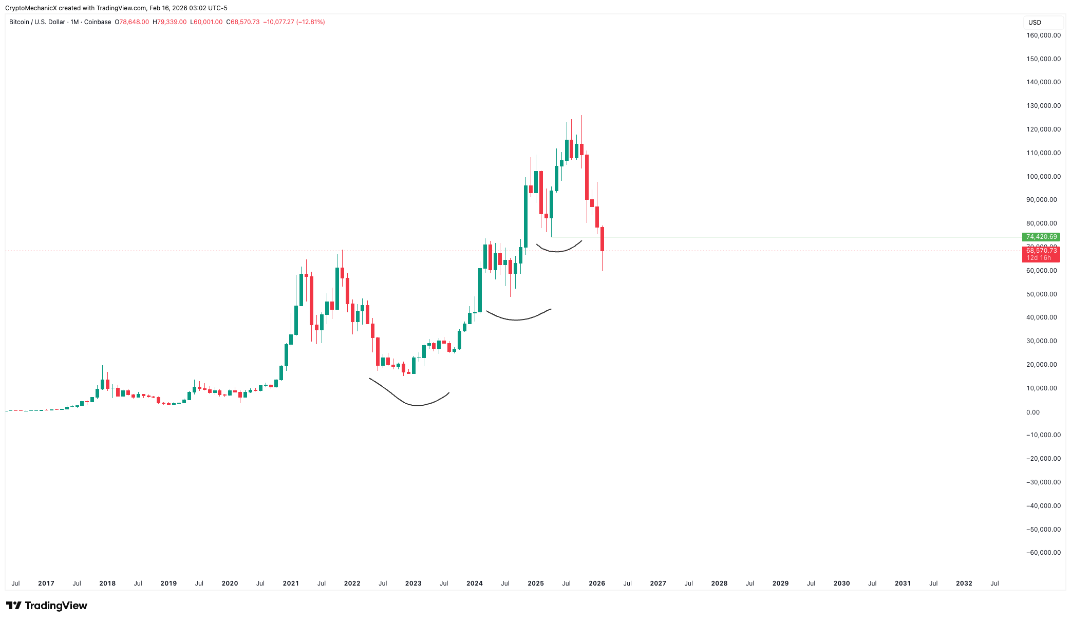 Istoric, de fiecare dată când Bitcoin a rupt tendința lunară, prețul a scăzut cu încă 40%–45%. Spun că se va întâmpla din nou? Desigur că nu. Dar aceasta este ceea ce s-a întâmplat în trecut.