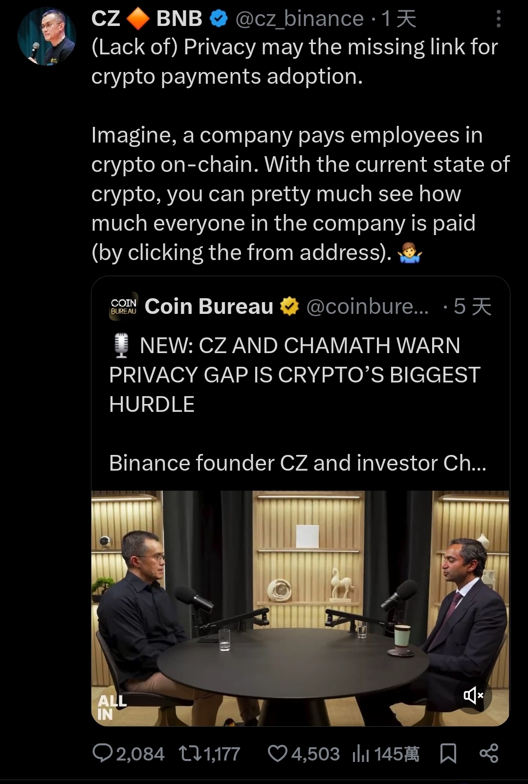 今天最熱的話題就是 CZ要大家想像加密貨幣怎麼發薪