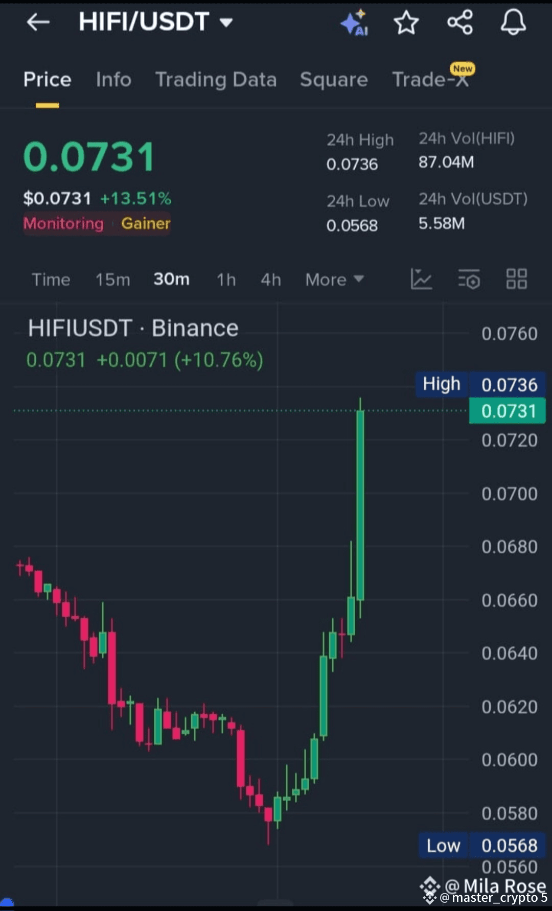 If $HIFI consolidates above 0.072, momentum could fuel a breakout beyond 0.074, potentially pushing toward 0.078 in the short term.
