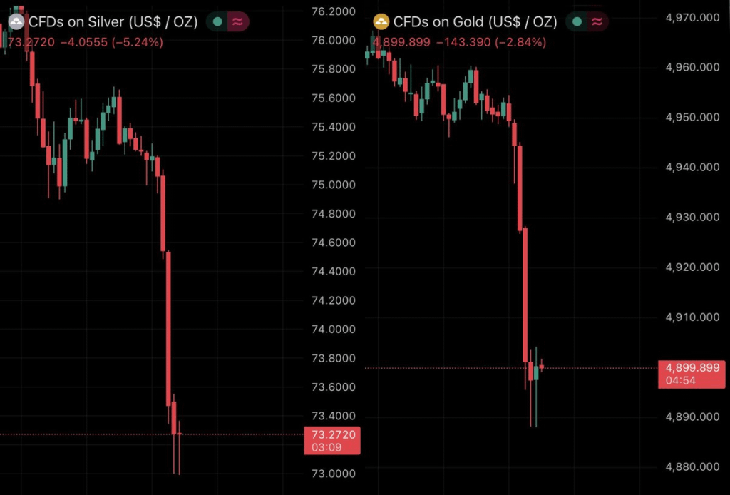 Postarea 2.5 Trilioane de Dolari Șterse în 30 de Minute: De ce Prețurile Aurului și Argintului Au Scăzut Din Nou a apărut prima dată pe CaptainAltcoin.