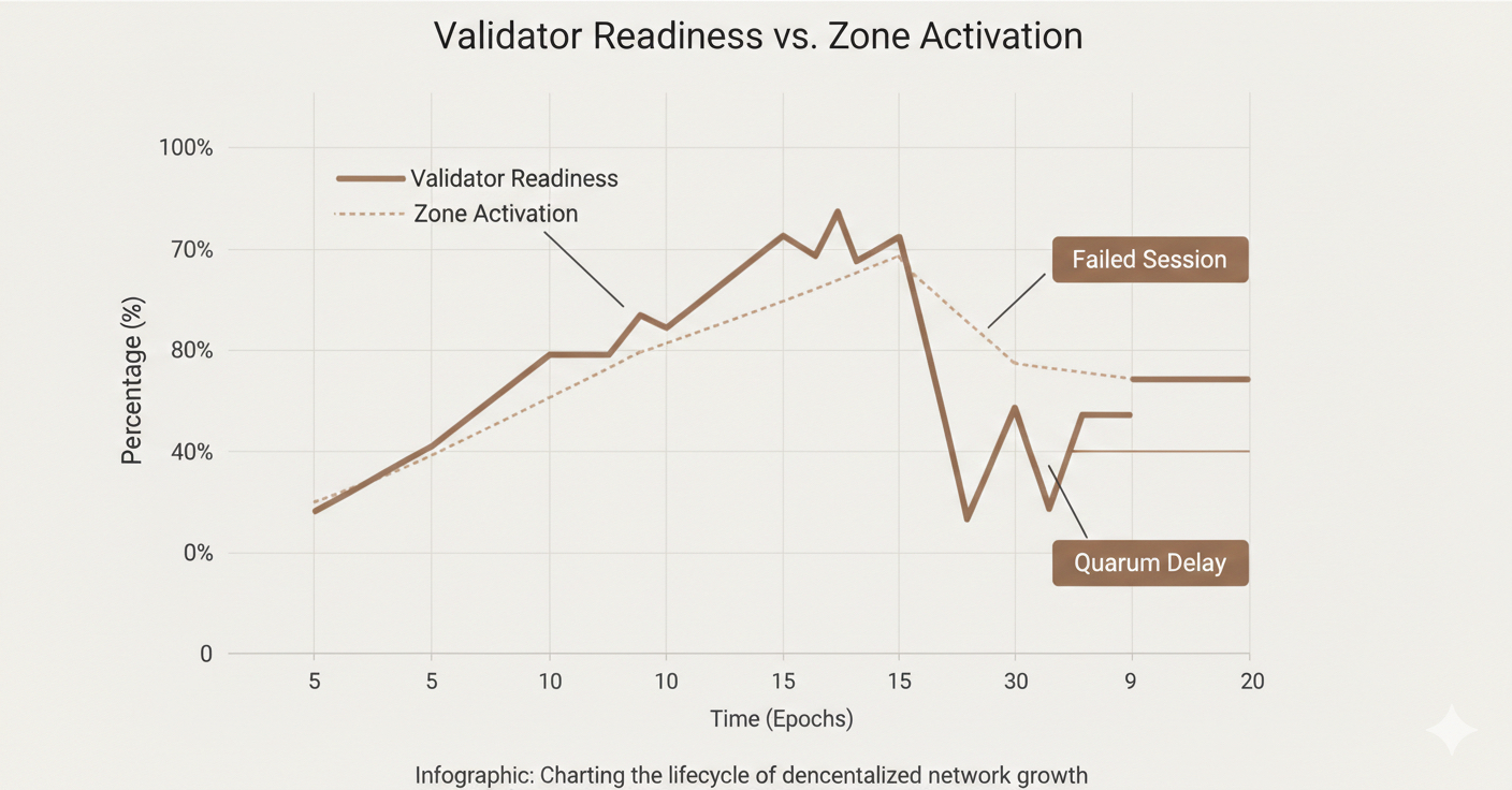 Hovering vote. Delayed quorum. Zone healthy but losing because stake weight insufficient. Screenshot tension in the ops chat.