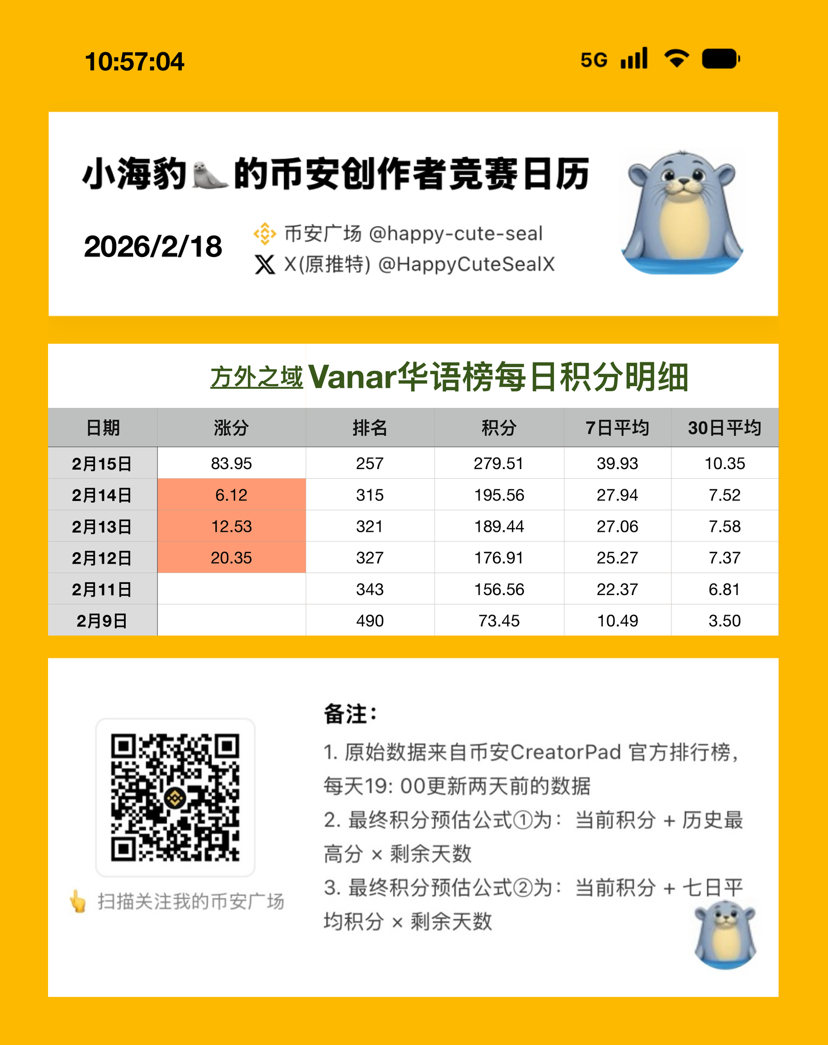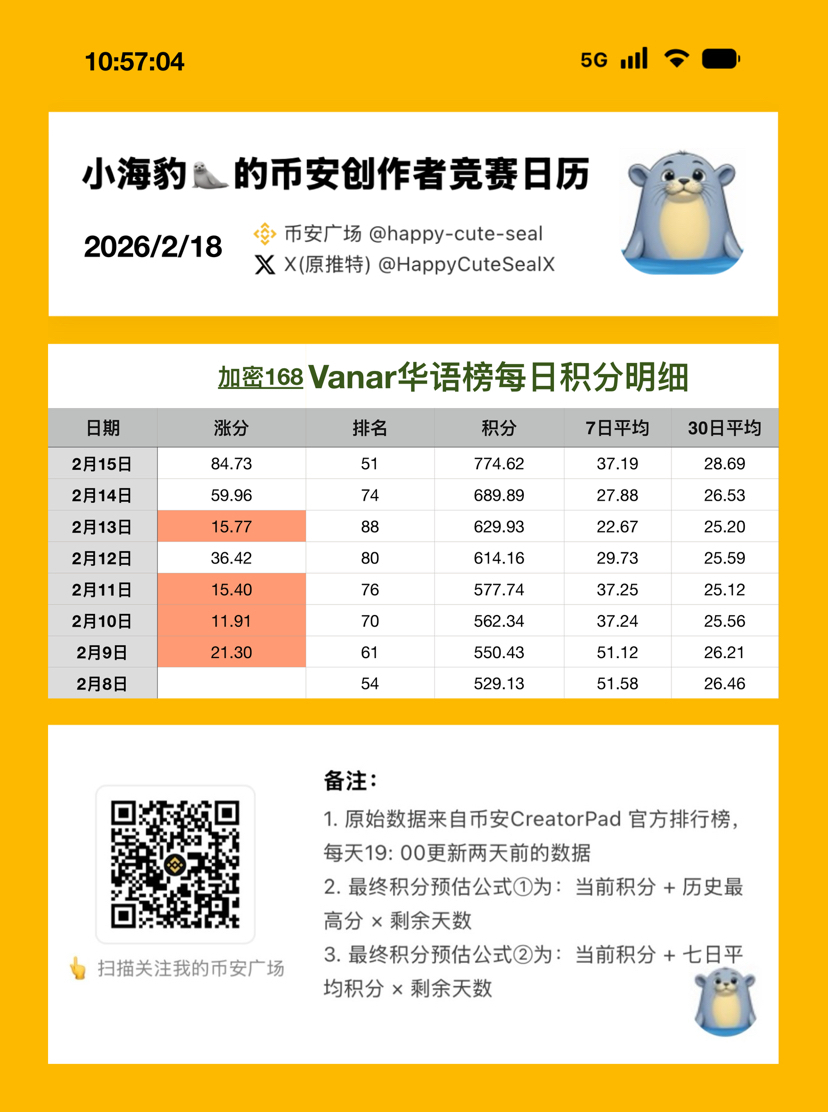 现在是东八区02.19上午9点, #creatorpad 官方数据更新至02.15。