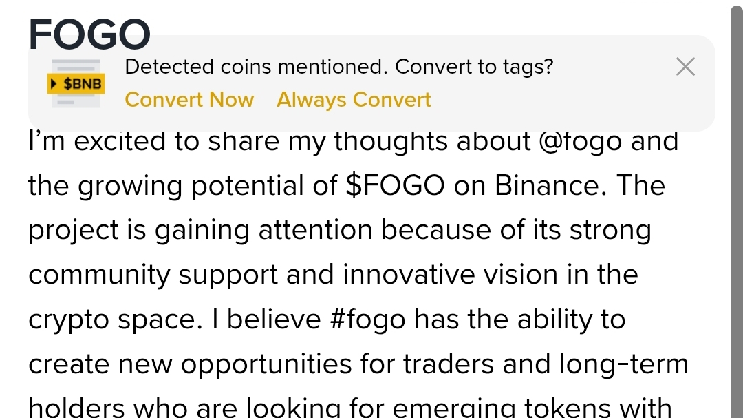 I’m excited to share my thoughts about @fogo and the growing potential of $FOGO on Binance. The project is gaining attention because of its strong community support and innovative vision in the crypto space. I believe #fogo has the ability to create new opportunities for traders and long-term holders who are looking for emerging tokens with active development and transparent communication.