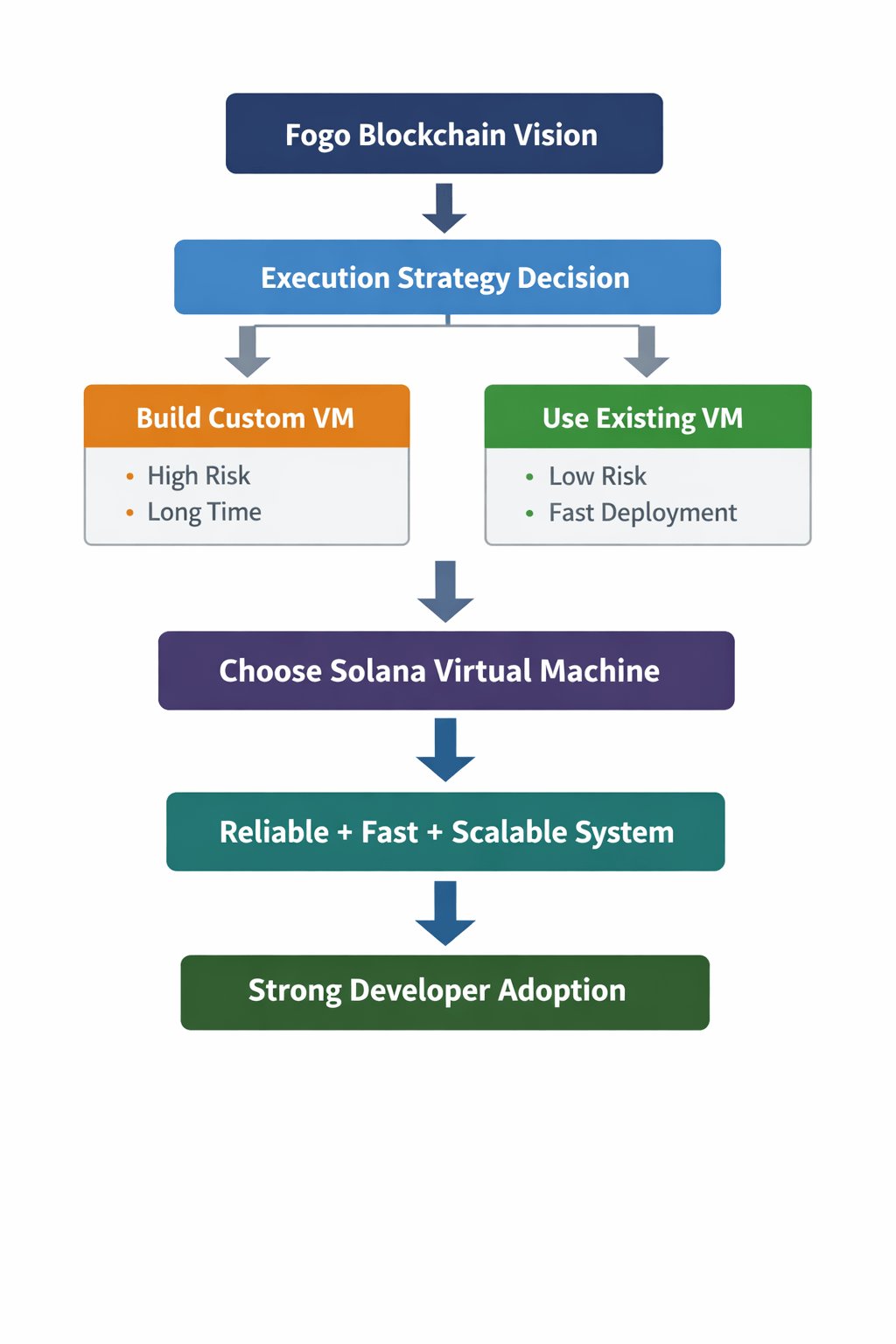 In the rapidly evolving world of blockchain, every new project faces a critical decision: whether to build its own execution environment from scratch or use an already proven system. Fogo has made a strategic and practical choice by leveraging the Solana Virtual Machine (SVM). Instead of taking the risky and time-consuming path of creating a new virtual machine, Fogo is building on a tested foundation. This decision positions Fogo for faster development, stronger reliability, and easier adoption from the beginning.