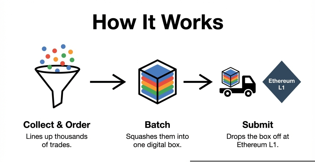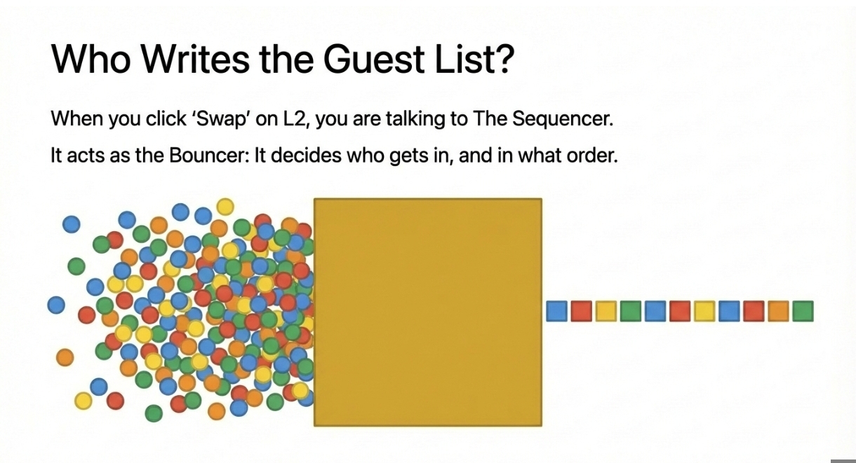 Un Sequencer este, în esență, un server computer puternic. Când dai clic pe "Schimbă" pe un Layer 2, nu vorbești direct cu Ethereum; vorbești cu Sequencer-ul.