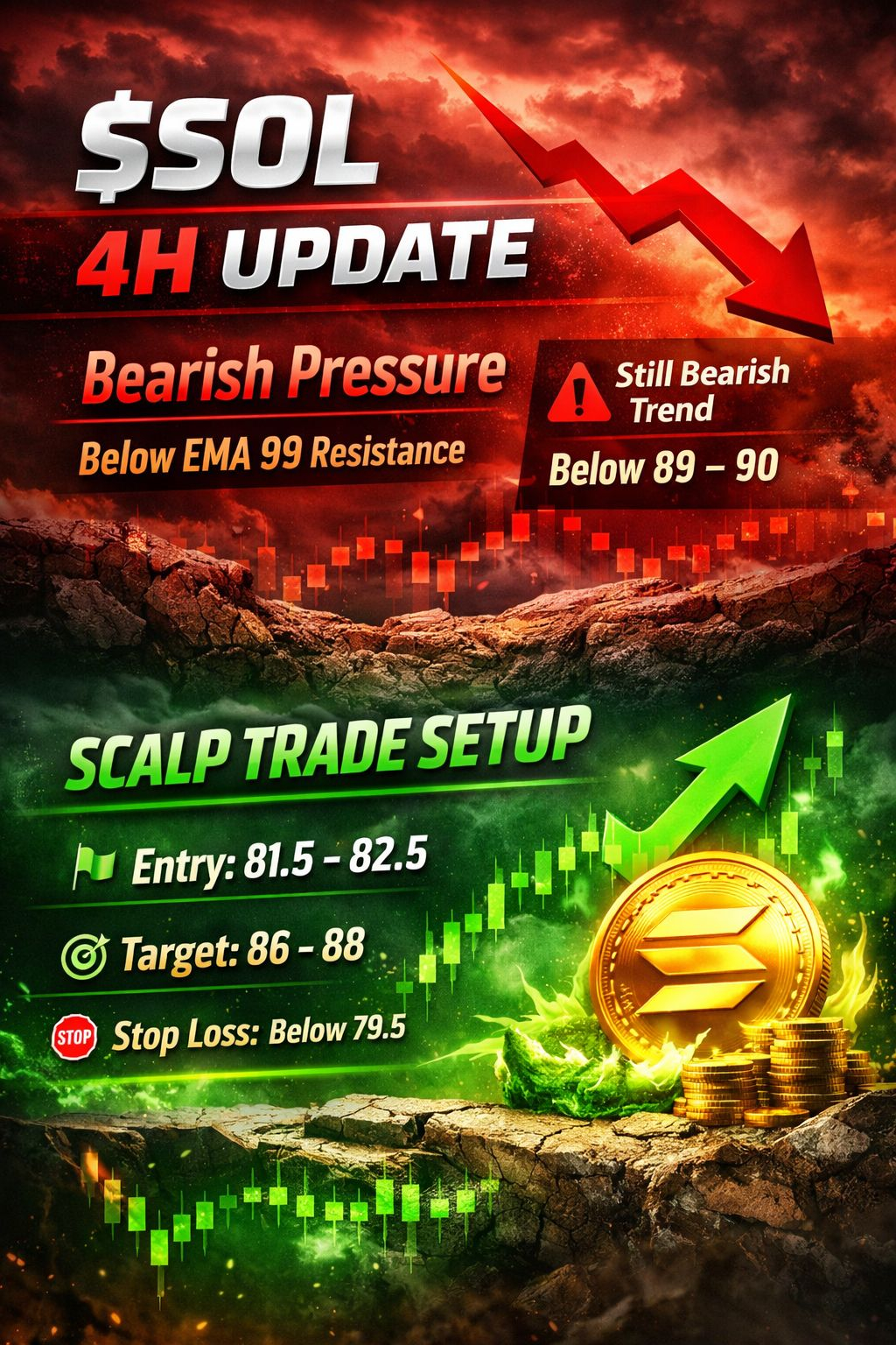 Until SOL reclaims EMA99 and holds above 90, the path of least resistance remains down, with only short-lived upside opportunities for scalpers.