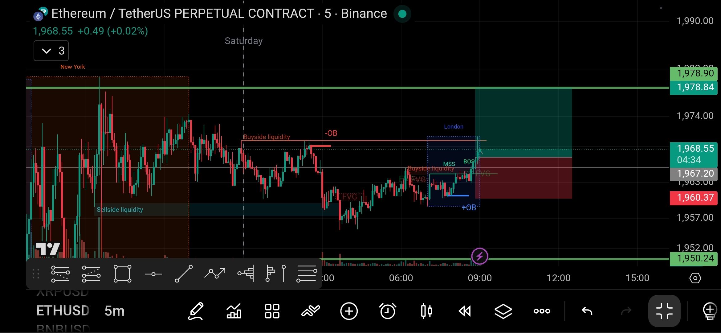 Clear break of structure with price holding above bullish OB and FVG zone, indicating strong momentum toward buy-side liquidity resting near previous highs.