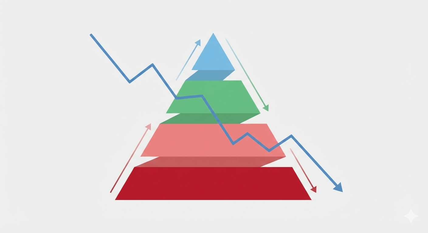 Você já deve ter ouvido falar em DCA (média do custo em dólar), mas sabia que dá para turbinar essa estratégia em momentos de queda? Em vez de comprar sempre o mesmo valor, você pode aumentar progressivamente o montante investido conforme o preço cai. É o que chamamos de estratégia em pirâmide (ou pirâmide de compras).