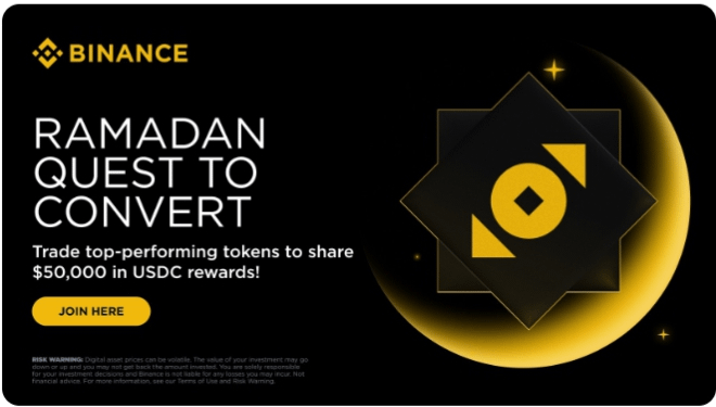 Celebrate the spirit of Ramadan 2026 with an exciting trading campaign! Join the Ramadan Quest to Convert and trade top-performing tokens for a chance to share a massive $50,000 USDC reward pool. Boost your portfolio, maximize your gains, and make this festive season even more rewarding with strategic trades and active participation.