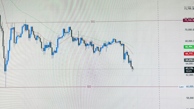 Bitcoin $BTC is currently testing the 62.5-63k mark and is down almost 8% for the week in just two days and there’s high probability with all the bearish outlook it will breach the 60k mark testing lower levels around 50k, the current bearish drive is getting overextended with Bitcoin being down 52% from ATHs in just 4 months.