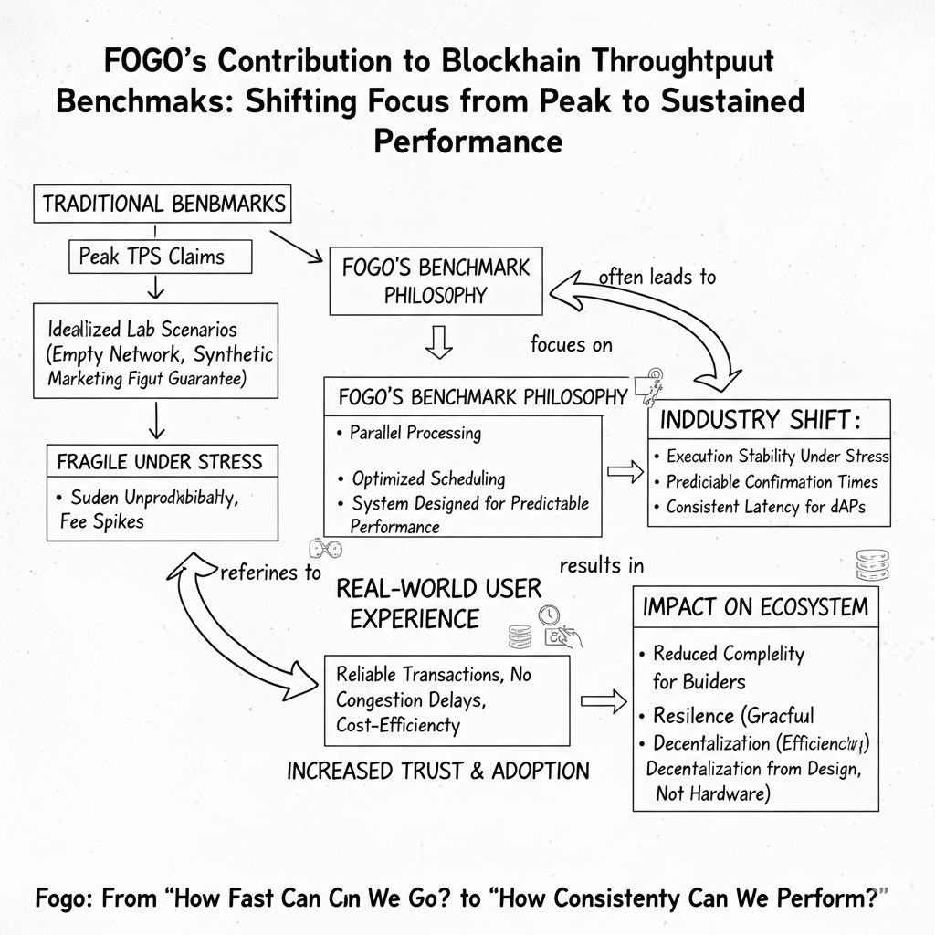 The strategic implication is that throughput benchmarks are evolving from marketing artifacts into operational standards. If Fogo succeeds in normalizing sustained-performance metrics, it could push the broader ecosystem to adopt benchmarks that reflect real workloads rather than synthetic extremes. That would make performance claims more comparable, more honest, and ultimately more useful to builders deciding where to deploy.
