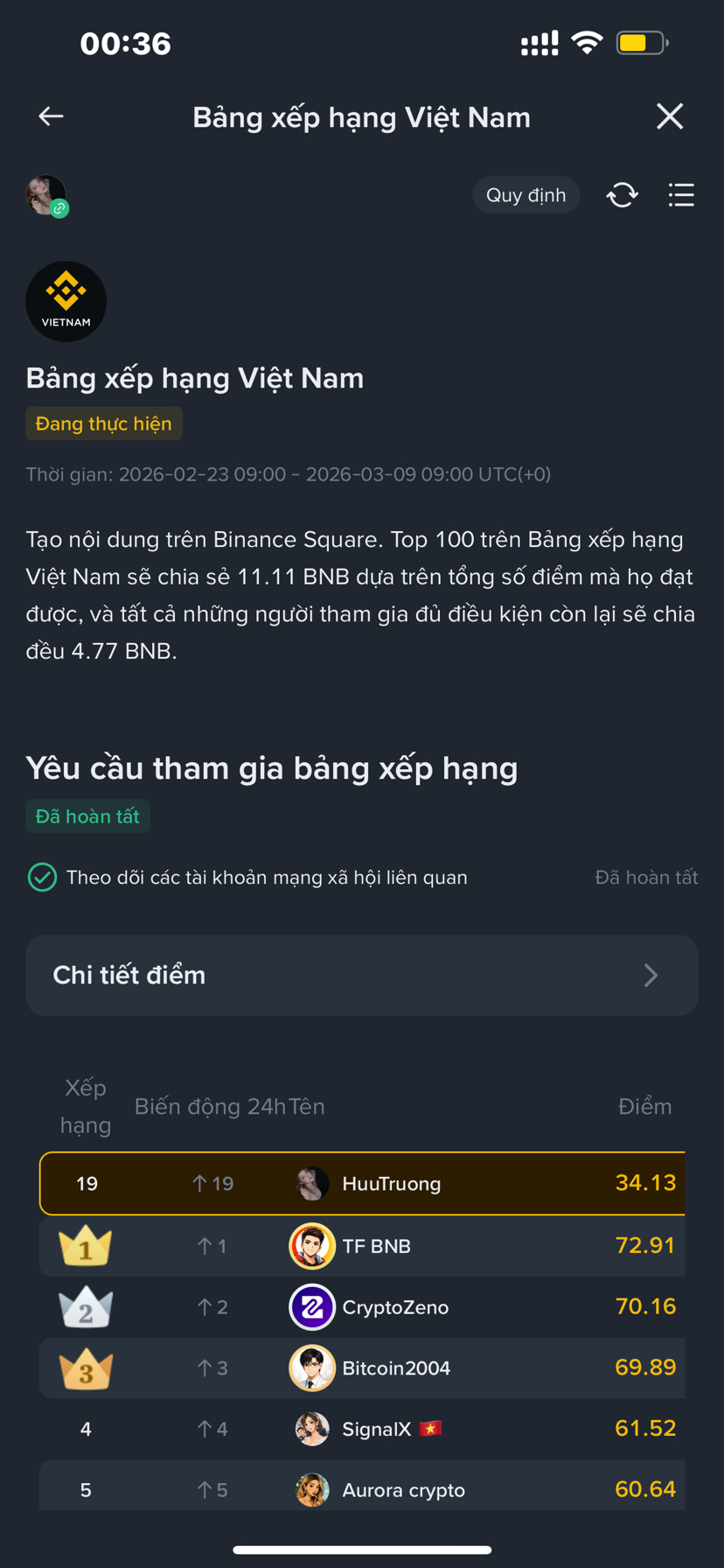 • Punctajul de astăzi va fi procesat și actualizat a doua zi pe tabloul de clasament. ([Binance][1])