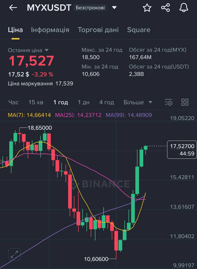 Masterclass de la echipa MYX din nou. Ieri au împins prețul în jos cu putere — de la $18 la $10.6. Mulți au crezut că s-a terminat, chiar cerând o scădere la $1. Scurtările s-au acumulat… și apoi a venit strângerea.
