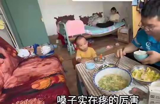 而他的妻子,裹着被子躺在床上,手机还亮着,连早上吃剩的外卖盒都放在床头柜上,睡得昏天黑地。