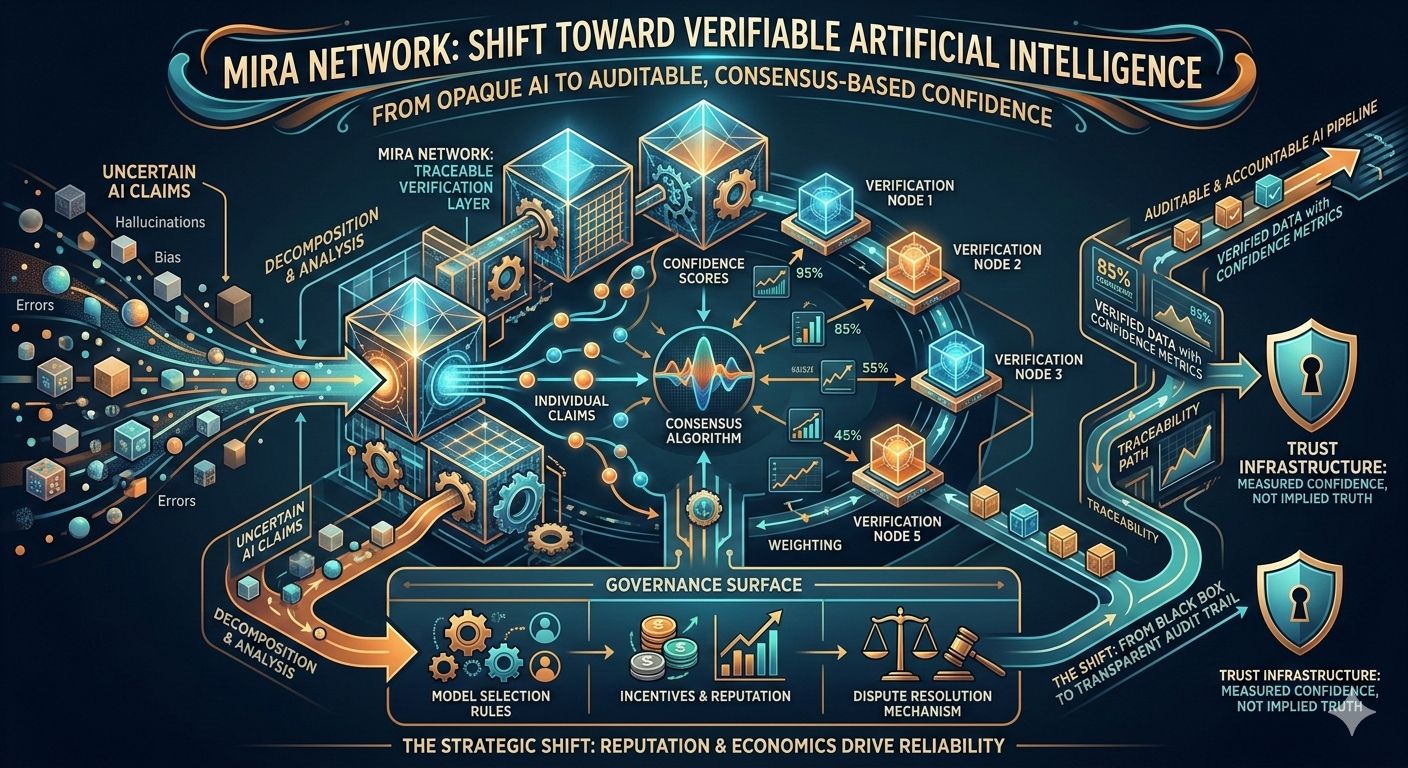 That distinction matters. A single AI output is an opaque artifact: you see the result, but not the reasoning path, the uncertainty, or the points of disagreement. A verification layer turns that opacity into a structured process. Claims can be checked, contested, weighted, and recombined. Confidence becomes something measured rather than implied.$MIRA