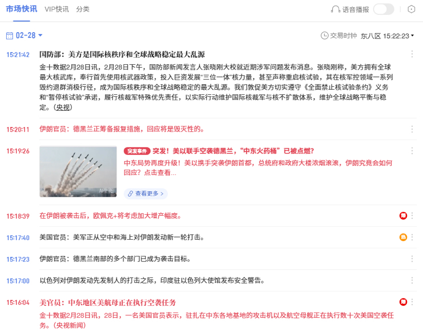 据星球日报、金十数据等消息证实,2月28日白天,以色列对伊朗首都德黑兰发动突袭,地点靠近最高领袖办公室,伊朗国家电视台证实该区域发生爆炸。随后,伊朗关闭领空,以色列全境进入紧急状态 。#以色列 #伊朗