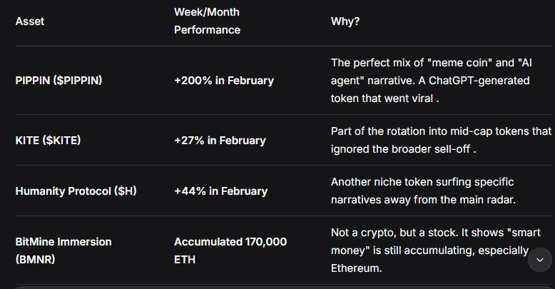 In the middle of this bloodbath, a few assets managed to shine. Money rotated into specific niches, proving that even in a bear market, small-cap rotations can happen.