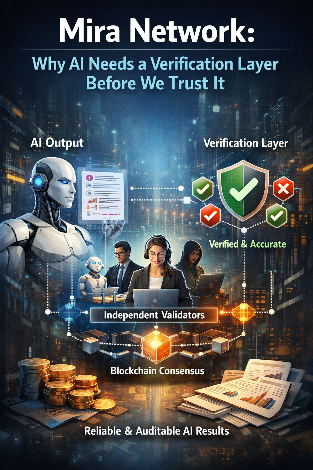 Here is the idea in simple terms: instead of trusting one AI output as a whole, Mira breaks that output into smaller claims. Then those claims are checked by independent validators. These validators can be different AI systems, not just one model. They review each claim and come to an agreement through coordination on a blockchain, supported by economic incentives.