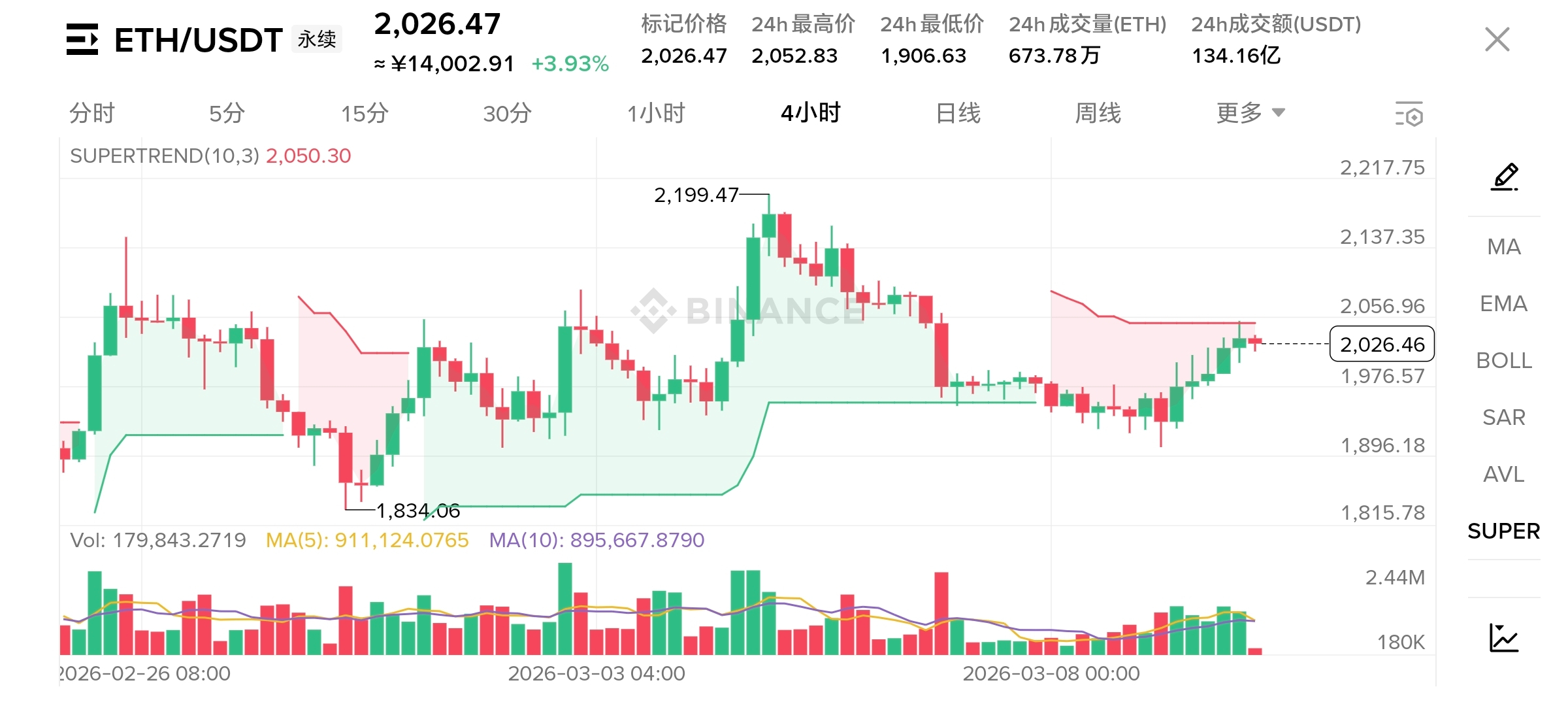 昨天原油的暴涨导致黄金白银自己美股和币圈的缩水,凌晨川普发文说战争基本结束以后,美股出现反弹,美股那边反弹过后币圈这边也跟着,接下来重点关注大饼7万关口能否突破且站稳,这个观点依旧不变站稳不了7万一切都是徒劳,现在还是在测试上方区间压力,75000关口突破不了还是会面临回调的风险,以太虽然涨幅不错站稳了第一目标2000但现在还是要测试上方压力位2200,这个位置很关键过年前到过年后始终差一点点突破,所以目前大的利好如果突破不了后面依旧会破前低,山寨的话随着主流的反弹主流山寨反弹力度还是相当不错,sol以及bnb和okb等一些币种有少数反弹,接下来的话大饼下方重点关注66000和65000这两个关口的支撑,以太的话关注2000关口和下方1900关口!