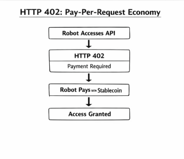 Thoạt nhìn thì đây chỉ là một mã trạng thái trong HTTP. Nhưng nếu đặt nó vào bối cảnh của AI agents và robot on-chain, ý nghĩa của nó lại khác hẳn: nó mở ra một cơ chế để máy móc có thể tự thanh toán cho tài nguyên trên internet.