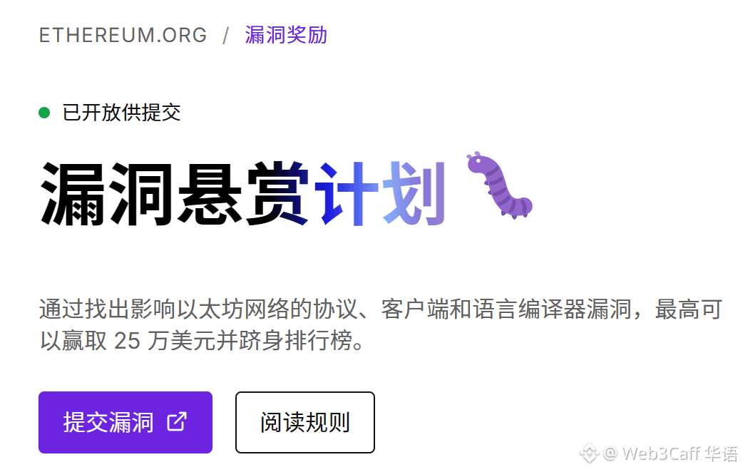 以太坊基金会漏洞赏金计划最高奖金提升至 100 万美元