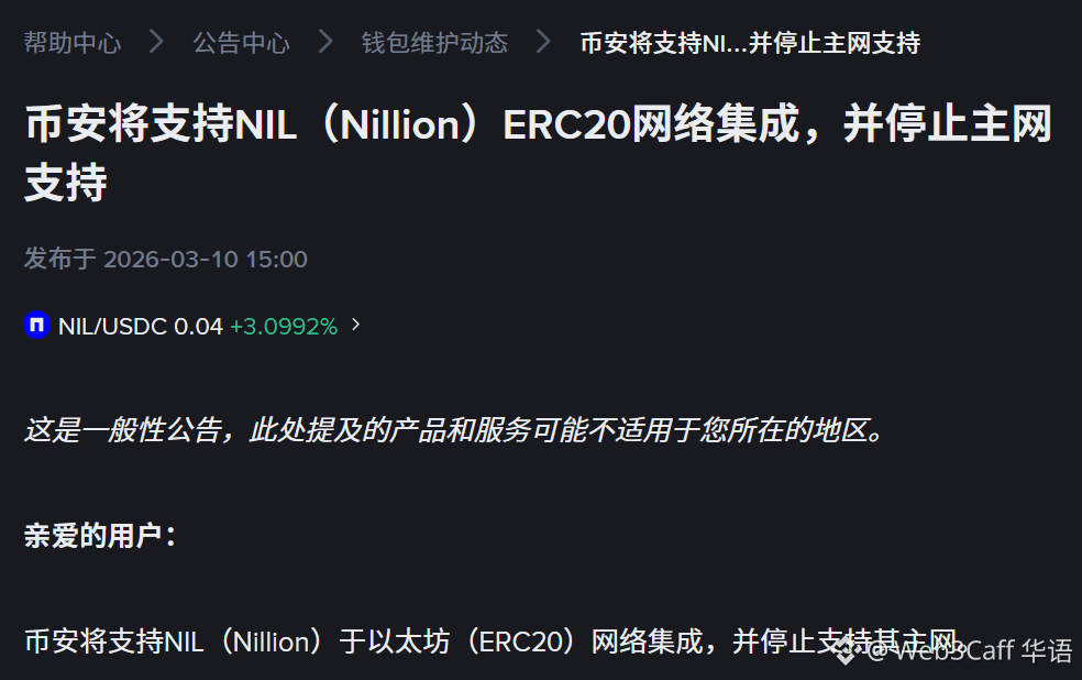 币安将支持 NIL(Nillion)ERC20 网络集成