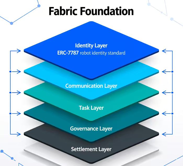 读完之后我承认,纸面上确实有东西。不是那种抄一堆术语糊弄人的白皮书,它那五层架构(身份、通信、任务、治理、结算)拆解得挺清楚,还整了个ERC-7777标准专门定义机器人的身份。但问题来了——纸面牛逼的项目我们见得还少吗?关键是落没落地。