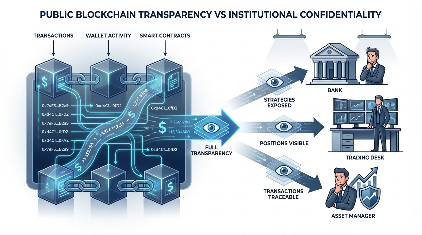 Ethereum's base layer was never designed for institutional participation. Every transaction hash wallet address and contract interaction sits permanently on a public ledger meaning a hedge fund executing a $500M position or a bank settling tokenized treasury bonds broadcasts its entire operational strategy to the world in real time. This is not a minor UX issue. It is a structural incompatibility between public blockchain architecture and the compliance-driven confidentiality-dependent workflows of regulated finance. The result is a hard ceiling on Real World Asset adoption. Institutions are not allergic to blockchain. They are allergic to financial transparency they cannot control.