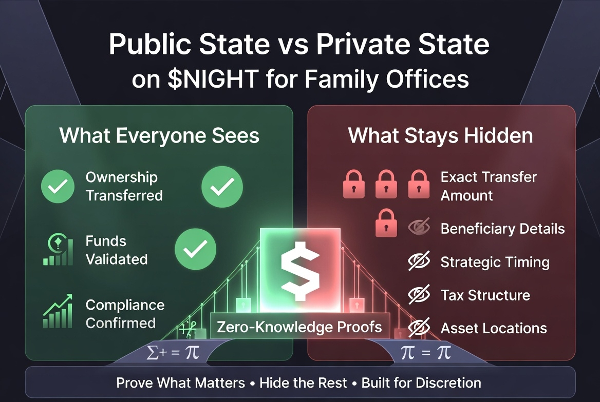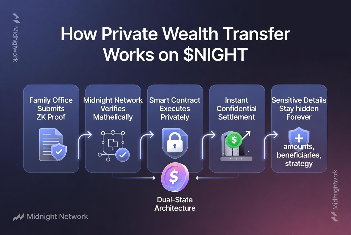 Picture a family office in Dubai reallocating $150 million across three continents. On a normal chain every wallet movement would be public theater. On $NIGHT the only thing visible is a clean cryptographic confirmation that everything is legitimate. The actual holdings, the timing, the beneficiaries, the tax structuring — all invisible.