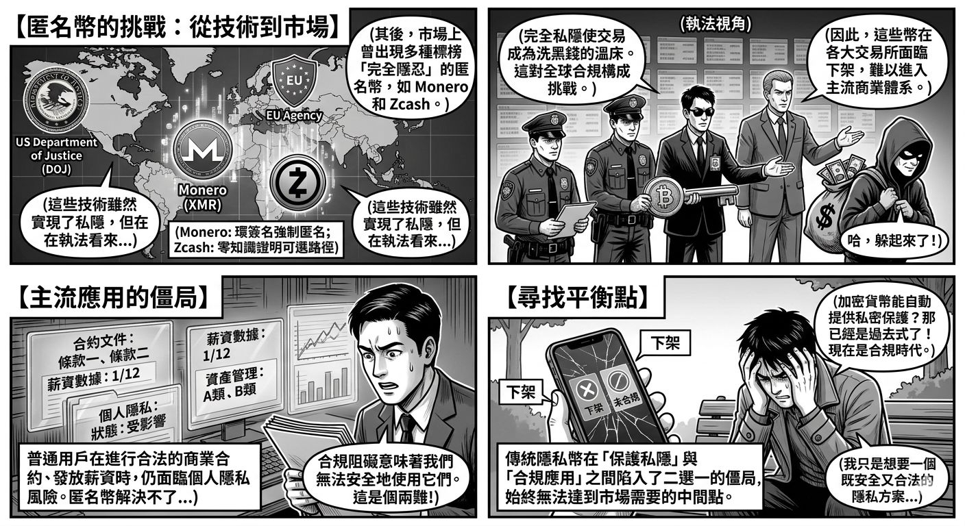 換言之,傳統隱私幣在「保護私隱」與「合規應用」之間陷入了二選一的僵局,始終無法達到切合市場需要的中間點。
