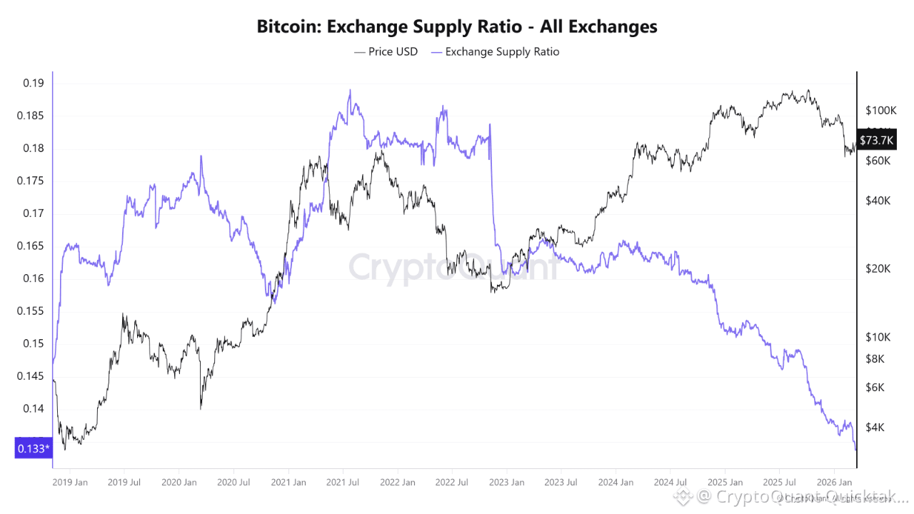 Data from the Bitcoin Exchange Supply Ratio indicates clear shifts in the structure of the available supply for trading across cryptocurrency exchanges recently. According to the latest data, Bitcoin is priced at approximately $73000, while the Bitcoin Exchange Supply Ratio across all exchanges stands at around 0.13386. This represents the lowest level for the index since 2018, reflecting a decline in the percentage of Bitcoin held on exchanges relative to the total supply. This drop suggests a continued outflow of coins from exchanges to private wallets or cold storage solutions, a behavior often associated with a growing preference for long-term holding rather than short-term trading.