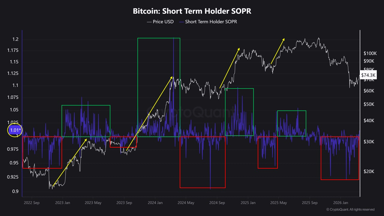 Istoric, perioadele în care STH SOPR rămâne constant deasupra valorii 1 au tendința de a coincide cu tendințe ascendente susținute. După corecții majore, odată ce SOPR recâștigă nivelul 1 și începe să-l mențină ca zonă de suport, piața își consolidează adesea impulsul ascendent.