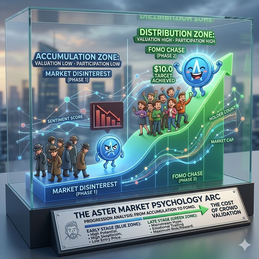 The attached graphic perfectly illustrates the "Validation Paradox" that plagues most retail investors. When an asset is undervalued and ignored (the $0.70 phase), the masses see risk. When the same asset skyrockets (the $10 phase), the masses see "certainty"—ignoring that the greatest profit margins were left behind at the bottom.