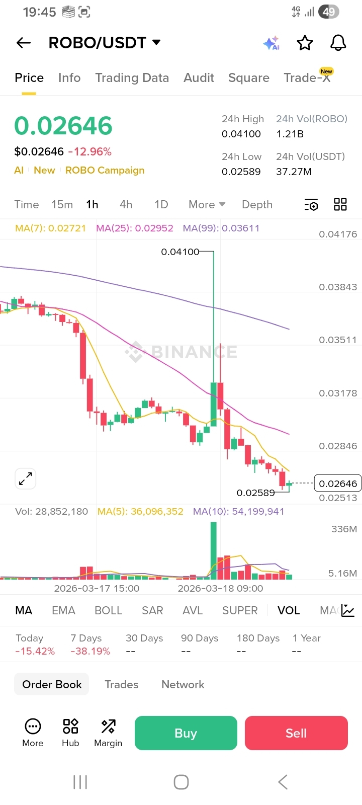 Fabric Protocol $ROBO is currently showing signs of a potential bounce as it stabilizes near a key support zone. After a period of consolidation, the H1 timeframe indicates a bullish reversal pattern forming, supported by increasing volume at these lower levels.