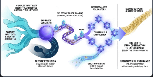 Am trecut recent prin documentația arhitecturală a @MidnightNetwork și am observat un punct foarte notabil: tranziția de la "observare" la "executare" (From Observation to Enforcement) combinată cu "transparență selectivă" (Selective Transparency). 🌙