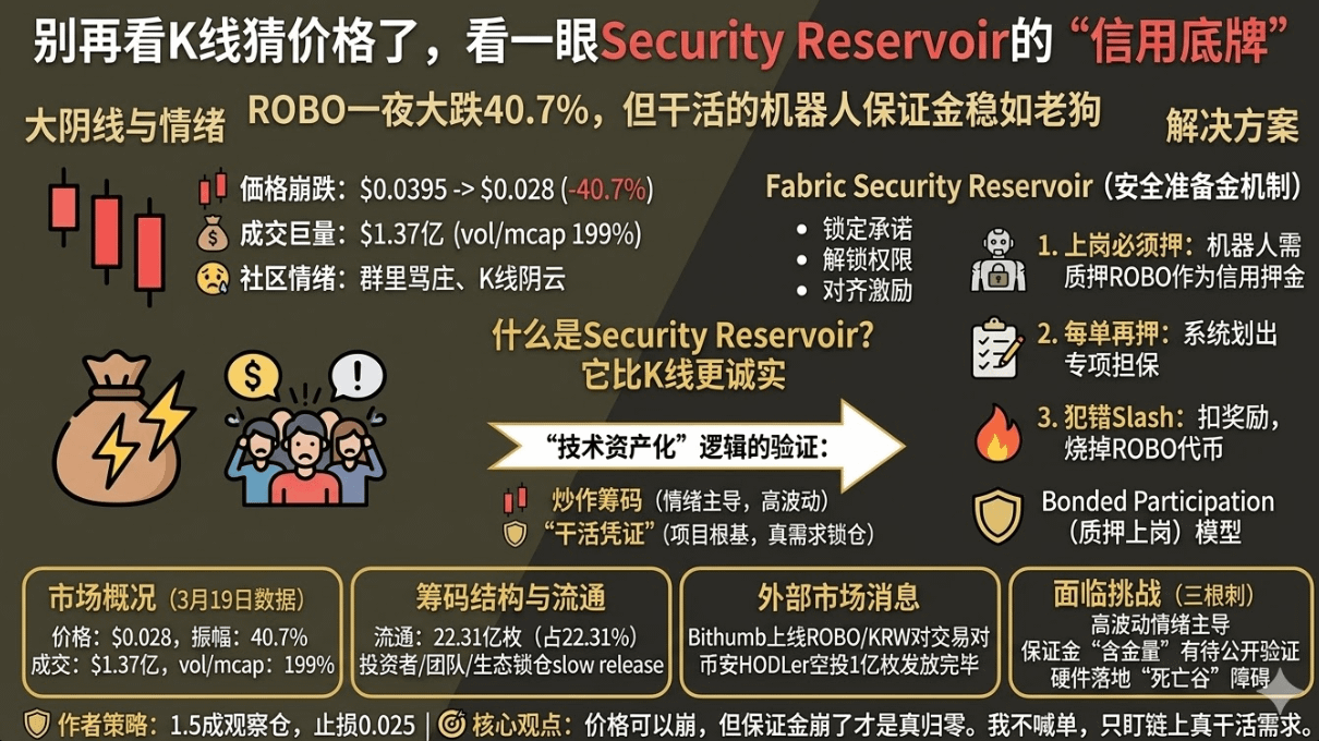ROBO这波40%的天地针,表面看是空投砸盘、Bithumb利好出尽。但Security Reservoir里那批没跑的人,比K线更诚实。