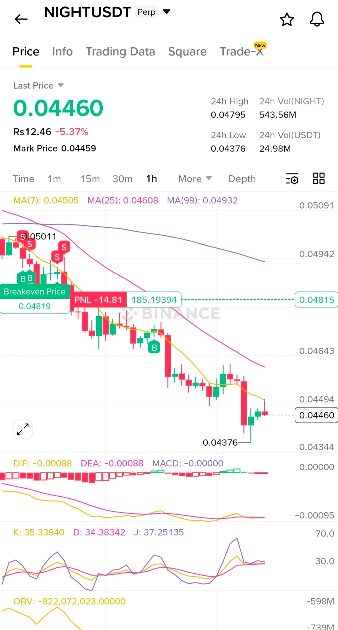 Right now Night/USDT is in a downtrend. Price is moving below key moving averages And Making lower highs And lower lows. This means sellers are still in control. The recent bounce From 0.0437 is weak and does not confirm a trend reversal.