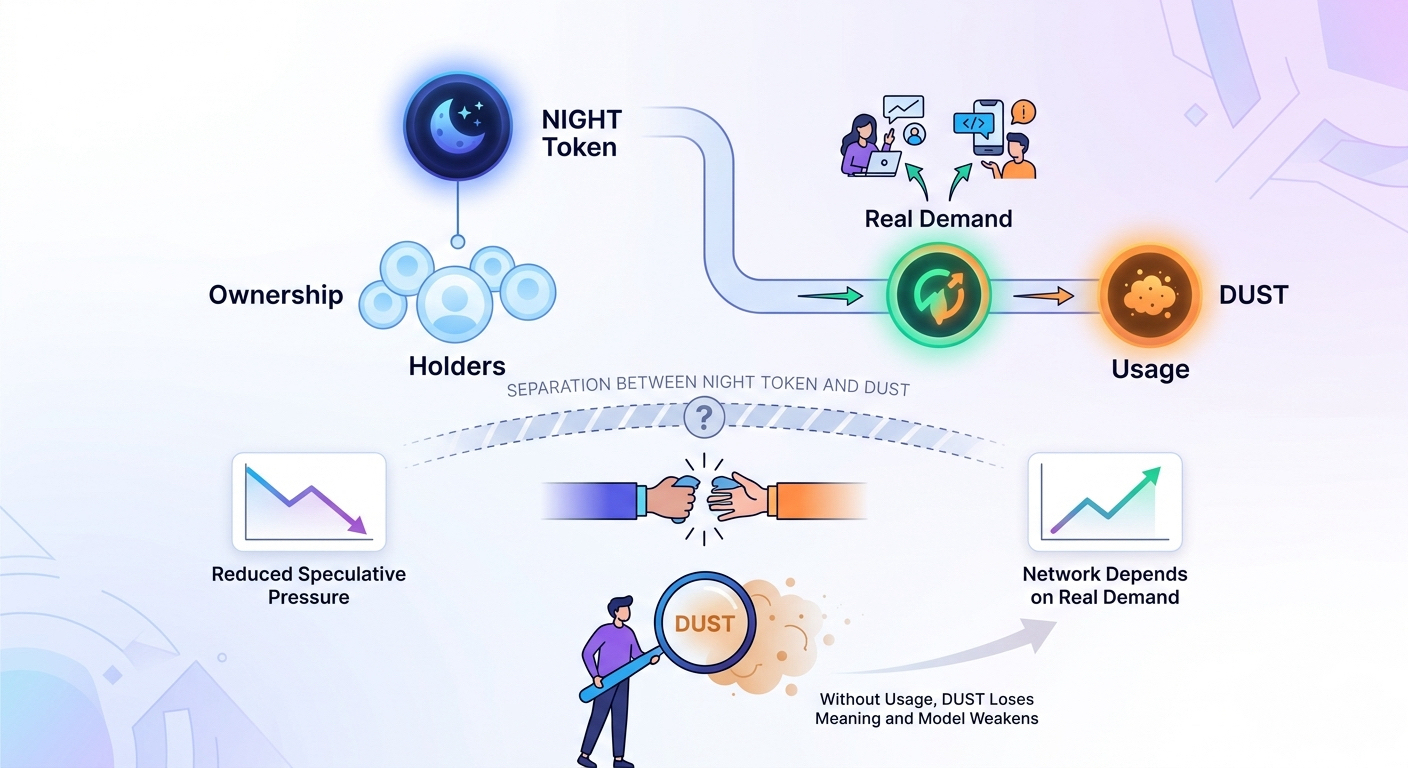 Another detail that I think many overlook is the separation between NIGHT token and DUST. When ownership and usage are no longer tightly coupled behavior changes. I believe this reduces speculative pressure and forces the network to depend on real demand. Without usage DUST loses meaning and the entire model weakens.