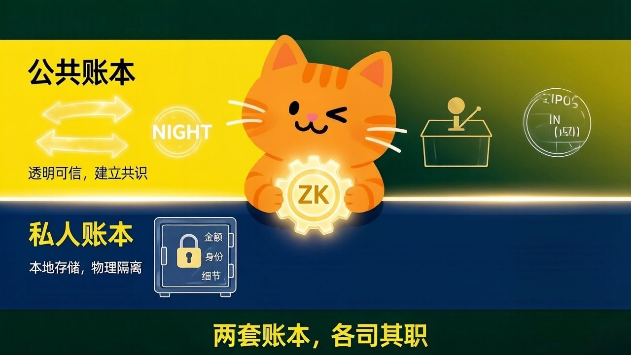 Aceasta este@MidnightNetwork cea mai de bază arhitectură. Împărțește jurnalul în două spații paralele: unul este jurnalul public, care stochează lucruri ce trebuie să fie transparente - câte token-uri NIGHT au fost transferate, cine a votat, dovezi ale funcționării rețelei. Aceste informații trebuie să fie transparente, altfel nimeni nu poate avea încredere în acest sistem.